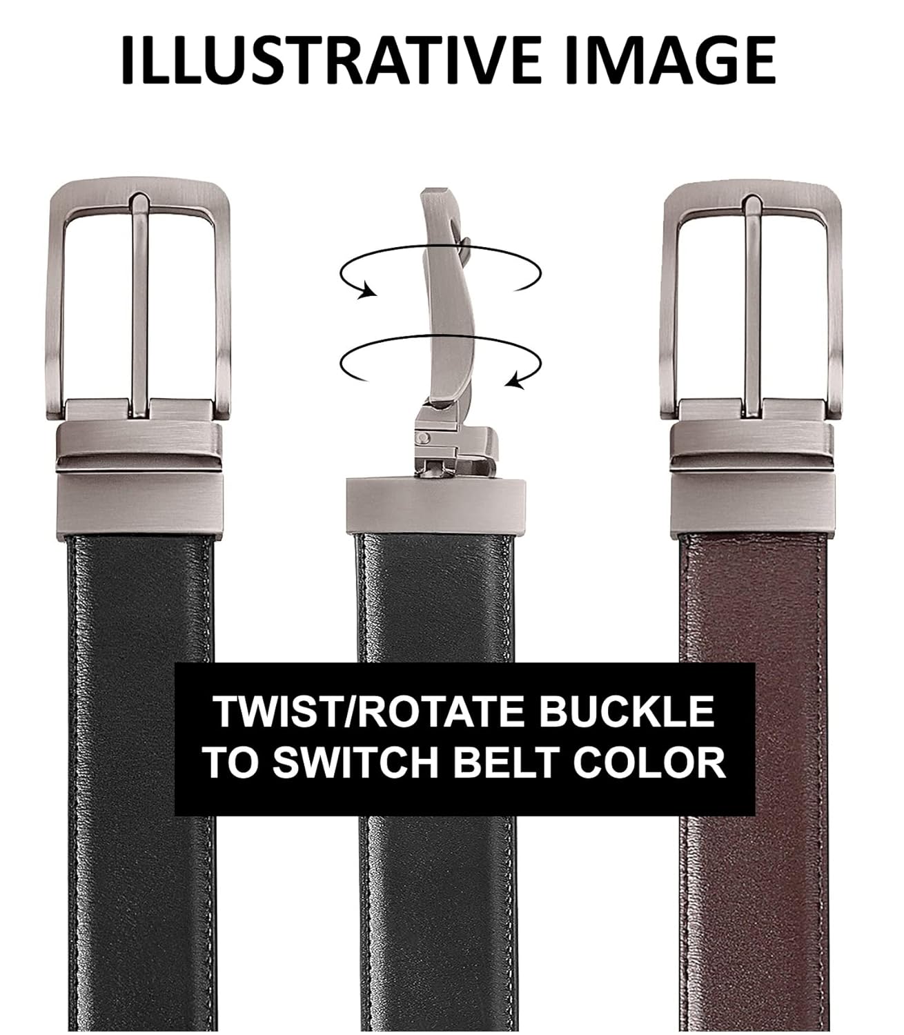 The reversibility turns one belt into two different colors from front to back sides, It is a good choice for different dresses without buying more belts, the genuine leather and precise process ensure its top quality for a durability; –Material: Genuine Leather; soft and durable; –Buckle: Zinc with strong and green coating , scratch resistance; –Force: 60lbs locking force resistance; –Packing: Elegant gift-boxed; –Size: Adjustable by cutting the strap for fit; –Attention: Resuming 1day every week to make it refresh; –Maintenance: Dry at room condition, away from heating or sunshine directly;